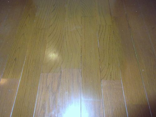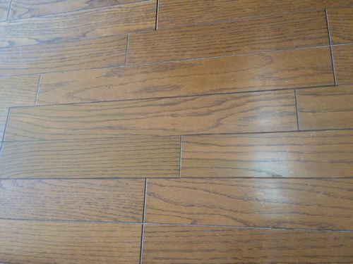 目地が傷付いて、フローリング全体が黒ずんでいる状態でした