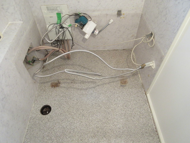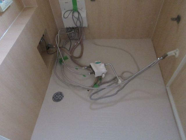 浴槽や設備機器は全て外してからシートを貼ります