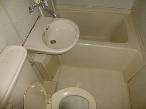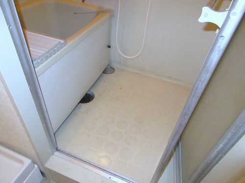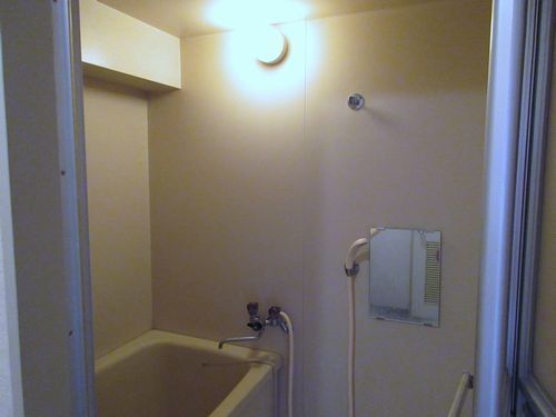 玄関開けたらすぐに3点ユニットバス、玄関が脱場になる間取りでした。