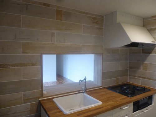 オーナー様が自分好みの、輸入タイルを用意して頂き施工にあたりました。