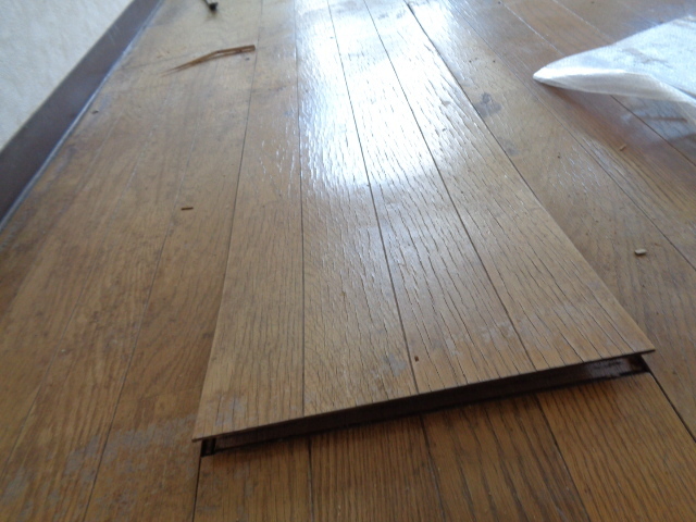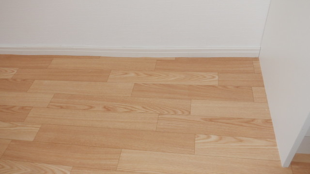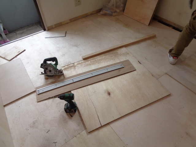 今回は傷みやすいフローリングに変えて、ベニヤとクッションフロアで仕上げています