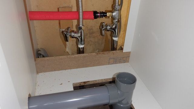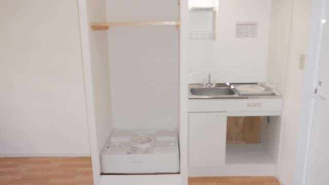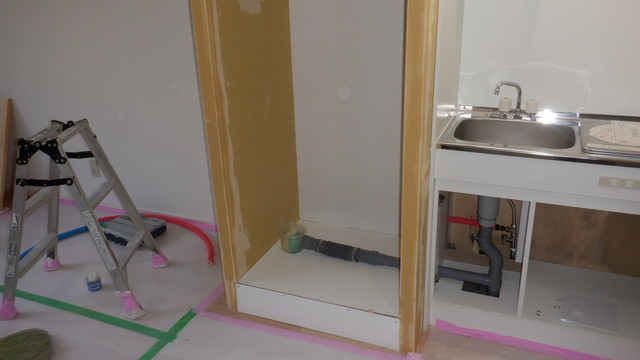 給排水管はミニキッチンから分岐して、洗濯スペースに